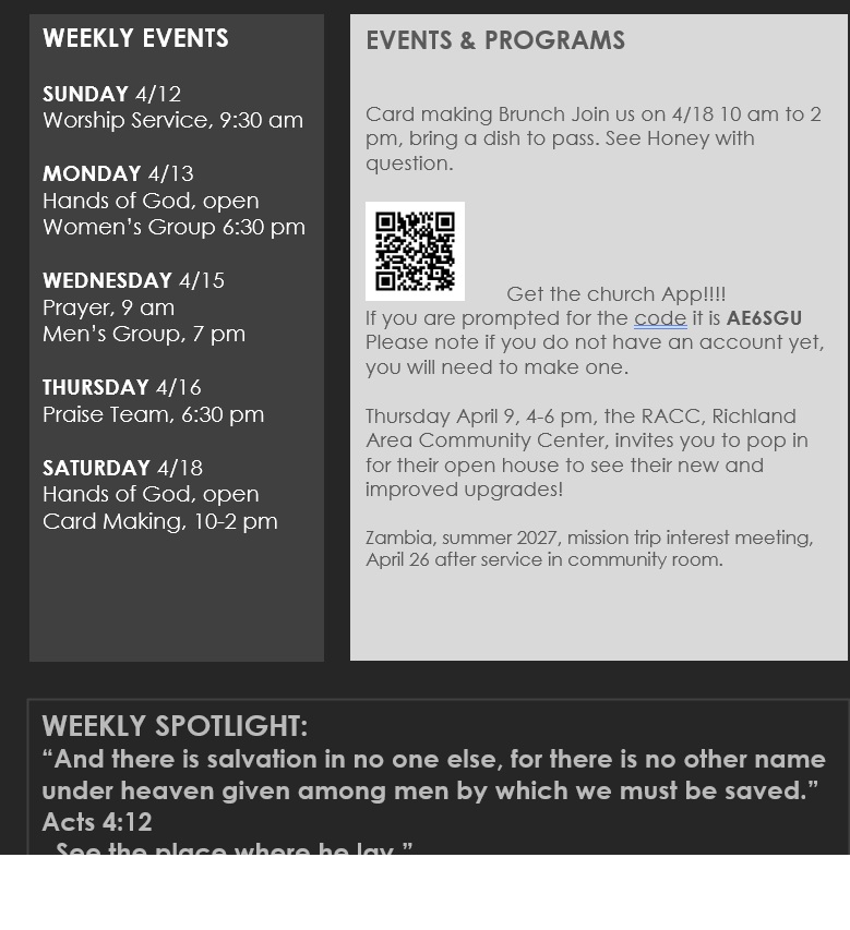 When you visit our non-denominational church, you will meet people of all ages who have found a warm family of Christian believers here in Richland, Michigan (just a little North of Kalamazoo).